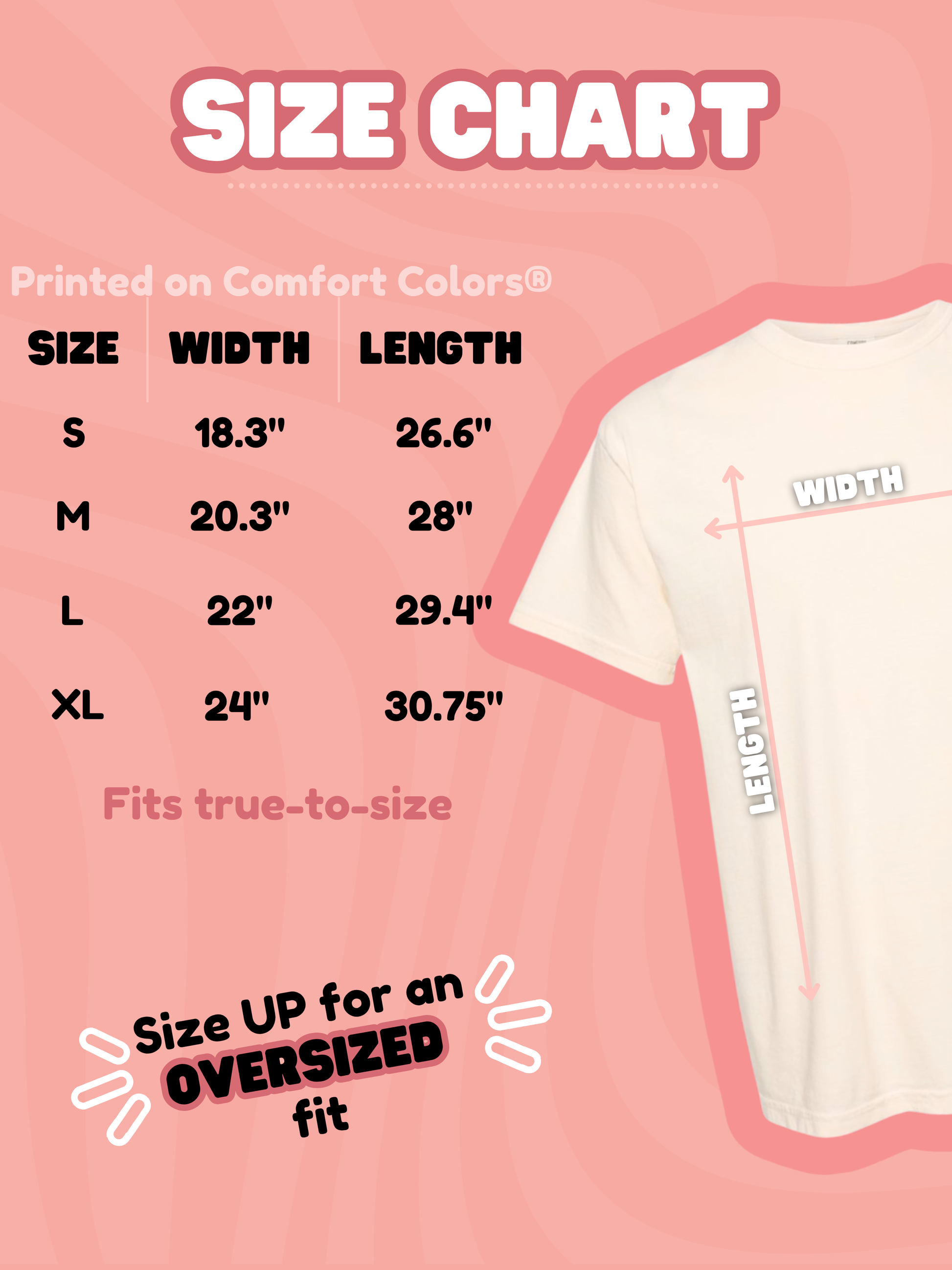 - For an OVERSIZED fit, size up 1 size